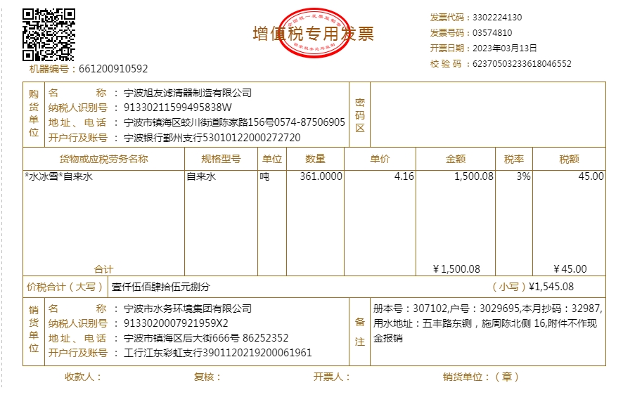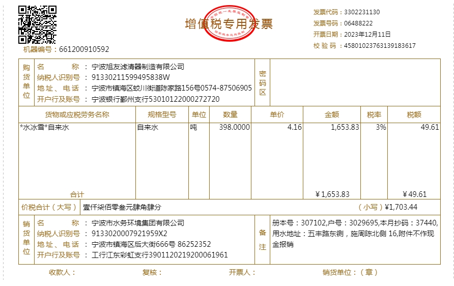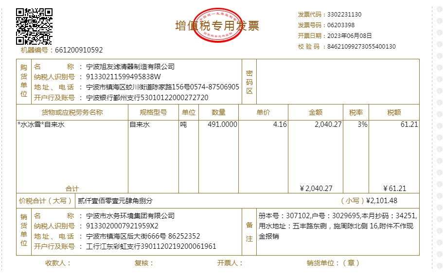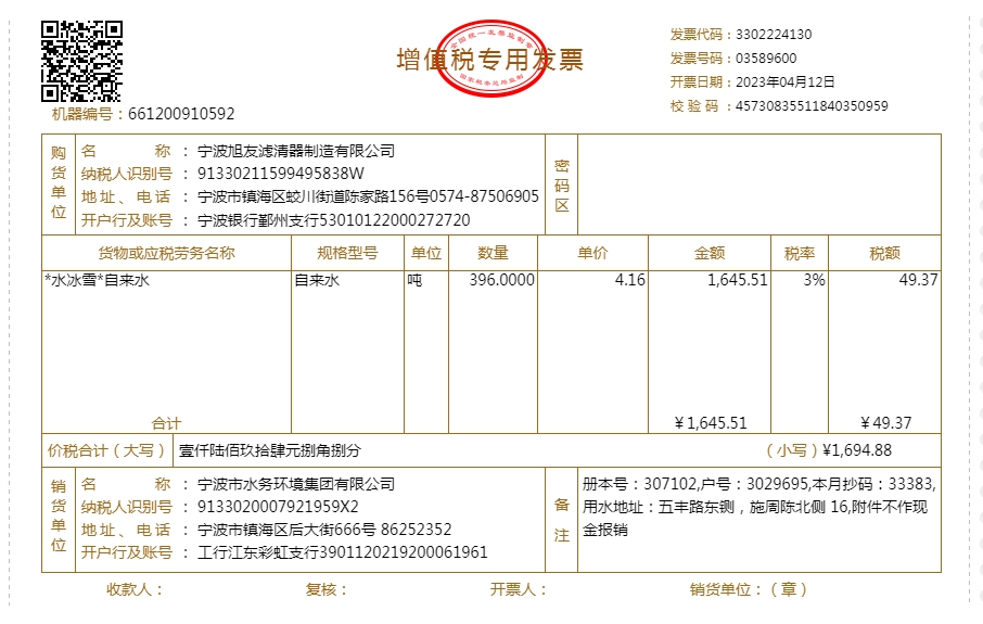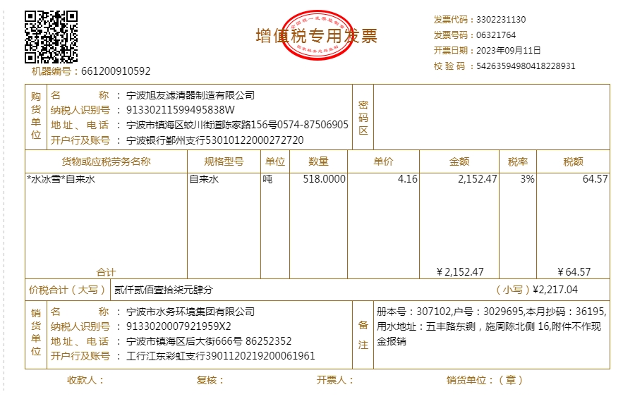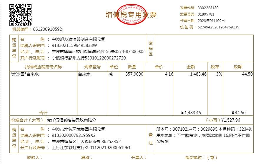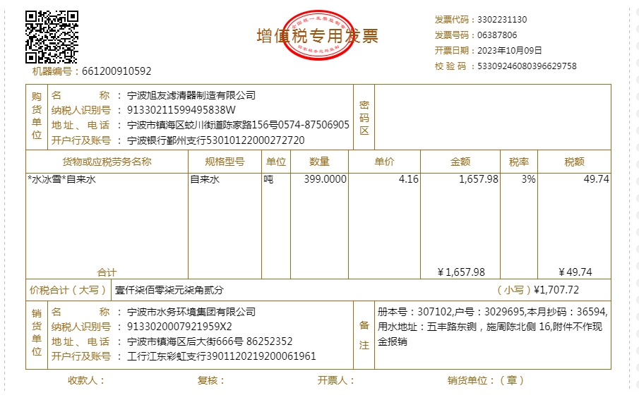 2023年水费发票